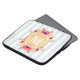 Laptop sleeve with mint striped pattern, watercolor pink flowers and faux gold foil custom monogram.