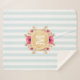 Sherpa blanket with mint striped pattern, watercolor pink flowers and faux gold foil custom monogram.