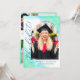 She did it! Tell your friends and relatives of your daughter's achievement and invite them to the party celebrating her graduation, all with one double-sided photo card. Your daughter's photo will be printed against a dreamy background of mint, teal, turquoise, and blue. She did it! is written along the side in fuchsia pink. The graduation party invitation is printed on the back along with four more photos, so you can add recent photos or childhood photos or a little of both to show your daughter's journey through childhood and adolescence.