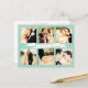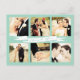 Gorgeous mint frame with a banner ribbon and cursive typography on the front of this designer postcard which you can upload into with 6 of your own engagement/wedding photo portraits. Easily and quickly personalise this designer professionally printed wedding thank you postcard here and now by just typing over the example text and adding your own photographs. Elegant, chic, simple and classy script/cursive typography.