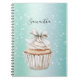 Mint White Bokeh Dots Bow Cupcake Notebook