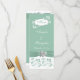 This stylish, modern and romantic mint green, silver grey, and white floral wedding menu has PRINTED on sage green ribbons with green and silver grey joined hearts with the word "LOVE" on them in a vintage style font that matches the wedding invitation shown below. The text is customisable. It is shown here on a rack card which has a high gloss finish on the front side and a matte finish on the back. If you would prefer the menu on paper to match your invitations, just email your request to the address below. ***PLEASE NOTE that if you change the font or size of the font, it may alter how your card prints. It will print the way you see it on your monitor, so if you have alignment issues, or sizing problems, please contact me for help. I will not see your menu once you order it, and Zazzle will NOT edit anything (typos, alignment, etc.). If you require assistance or would like any other matching items, please email your request to niteowlstudio@gmail.com.
