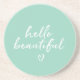 Mint White Hello Beautiful Inspirational Heart Coaster
