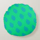 This round cushion shows a greenish colour on its surface that evokes the spice of mint, with ogival turquoise leaves that generate the same sensation.