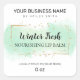 A pastel green, watercolor ink label for a homemade lip balm, gloss or scrub with a cooling, minty, menthol flavour and feeling.