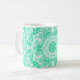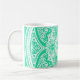 This white mandala sits on a minty green background. The colours are very relaxing and light. Part of the Bardh Mandala Collection.