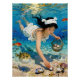 "Mio’s Descent" – An Ocean Portrait. With a calm face and graceful stroke, an Ama diver collects pearls beneath rippling light. Her basket is filled with treasures from the sea as fish glide alongside. This painting captures not just labour but poetry: the descent of a woman into water becomes a story of harmony between body, soul, and ocean.