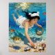 "Mio’s Descent" – An Ocean Portrait. With a calm face and graceful stroke, an Ama diver collects pearls beneath rippling light. Her basket is filled with treasures from the sea as fish glide alongside. This painting captures not just labour but poetry: the descent of a woman into water becomes a story of harmony between body, soul, and ocean.