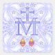 Miraculous Medal with a blue scrollwork background