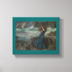 Vintage painting of woman with long red hair looking out to sea. A ship has crashed in the storm and is breaking up. Fine art by English artist John Waterhouse.