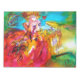 Colourful, whimsical and vibrant Venetian masquerade character. Beautiful sophisticated blonde woman is sitting with a red rose and a feathered mask in hand with sparkling gold fuchsia fabrics of a baroque masked ball costume with feathers and a dog. Watercolor painting with bright colours in ,yellow blue pink, green,gold sparkles and silver foil , inspired from characters of Comedy of Art ( Commedia dell' Arte ) , Carnival of Venice and Venetian feather masks.This cool and artistic design is also a beautiful gift for special occasions ,birthdays ,christmas, holiday,Valentine's Day,Mardi Gras ( Fat Tuesday ) season.