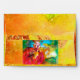 Colourful, whimsical and vibrant Venetian masquerade character. Beautiful sophisticated blonde woman is sitting with a red rose and a feathered mask in hand with sparkling gold fuchsia fabrics of a baroque masked ball costume with feathers and a dog. Watercolor painting with bright colours in ,yellow blue pink, green,gold sparkles and silver foil , inspired from characters of Comedy of Art ( Commedia dell' Arte ) , Carnival of Venice and Venetian feather masks.This cool and artistic design is perfect for weddings,nuptial ceremonies,bridal showers,sweet 16,quinceanera birthday parties,Halloween costume parties,,costumed dance balls,romantic engagements,save the date announcements,holiday office party, family reunions,cocktails,new year's day eve celebrations,anniversaries,gatherings,concert,recital or just about any event you wish.