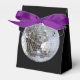 Black tent-style with purple ribbon favour box with an image of a dazzling mirrored disco ball. Change the ribbon to silver for a more elegant look. See the entire Disco 70s Favour Box collection in the PARTY FAVORS section.