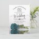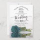 This beautiful wedding invitation features a photograph of a long stemmed teal or turquoise coloured rose laying on its side reflecting in a pool of water with ripples and waves. The typography features an elegant script calligraphy and the wording is formal making this invitation both modern and classic. The back is a beautiful marbled teal colour. This invitation is optimised for the arch shape. Gorgeous way to invite your friends and family to share in your special day.