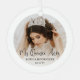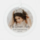 Commemorate the quinceañera's special birthday celebration with an elegant modern "Mis Quince Años" round metal photo Christmas ornament. The pictures and all wording on this template are simple to personalise to create your own unique keepsake. The colours, font styles and overlay opacity can be easily customised with the Zazzle Design Editor tool. The modern minimalist black and white design features trendy script calligraphy, elegant classic typography, and two pictures of your choice. This template is set up for a 15th birthday party, but can be personalised for any age or event. This Quinceañera Christmas ornament makes a stylish keepsake gift idea for a teen girl's Mis Quince Años celebration. Feliz Cumpleaños! Happy fifteenth birthday!