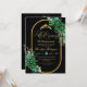 Chic Mis Quince black emerald green and gold 15th birthday invitation with beautiful rose and gold dust on with a gold ink pour effect (the gold is a digital effect, not real foil ) and modern calligraphy. Classy Quinceanera and elegant script and chic flowers print birthday invitation.