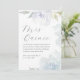 This elegant Mis Quince 15 years birthday quinceañera invitation features a romantic style with your personalised quinceanera celebration details, mass time and reception information. This beautiful invitation card includes pastel watercolor blue and purple flowers with greenery and grey text on a simple white background. The back is solid white. Customise with your own unique details!