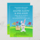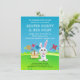 An adorable, but mischievous Easter bunny has collected all the Easter eggs on this cute Easter party and egg hunt invitation! He has them in his Easter basket on a beautiful day in the flowery meadow and is keeping them for himself! Customised Easter party information prints above in the blue sky. The reverse reveals the same meadow background, but the bunny is gone along with all but one of the eggs and an empty basket! Add extra party information above or just delete the placeholder text to leave it blank. Available with matching products.