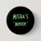 Set against a black background, "Misha's Minion" is centrally displayed in a light green font. A great piece of flair for the Misha fan.