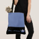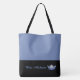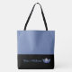 This cute stylish large tote bag is shown in a Medium Blue and black bottom colour block style with a Blue pageant crown and custom text.