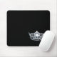 Mouse pad shown with a photo print of a round gleaming crown in a silver-tone colour.