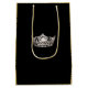 This Silver pageant crown gift bag shown in Gold-colour & Black and in the Medium size. One Silver crown is perched in centre on each side with plenty of room for custom text if desired. Bag has handles. Add some gold or silver foil tissue paper and/or pageant favour gift tag of ours for that perfect presentation!