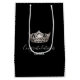 This Silver pageant crown gift bag shown in Silver-colour & Black and in the Medium size. One Silver crown is perched in centre on each side along with personalised text. Shown here is "Congratulations" and "Emma" waiting for your personalisation. Bag has handles. Add some gold or silver foil tissue paper and/or pageant favour gift tag of ours for that perfect presentation!