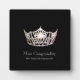 An award for any one who wishes to have a crown on it. Shown in a 5x7" size this plaque is a real stand-up award for your pageant winners, contestants or even best mum. Created in a sleek Black background with light Silver-Grey text specifying the award of your choice which you can customise. Buy as is or change the pageant name of course to your own as well as the award category. Plaque has stand attached and an image of a Gleaming Silver Crown. Scratch resistant coating makes this item a real winner.