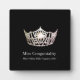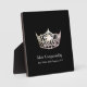 An award for any one who wishes to have a crown on it. Shown in a 5x7" size this plaque is a real stand-up award for your pageant winners, contestants or even best mom. Created in a sleek Black background with light Silver-Grey text specifying the award of your choice which you can customize. Buy as is or change the pageant name of course to your own as well as the award category. Plaque has stand attached and an image of a Gleaming Silver Crown. Scratch resistant coating makes this item a real winner.