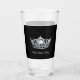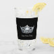 This glass has a silver gleaming crown image printed on over black background on clear glass. Text for you to personalise, shown as Miss Renton Valley.
