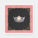 Shown printed on White standard lucheon napkins is a pretty Silver gleaming glamourous crown over Black background with a wider Coral-Pink border and a smaller White border surrounding on the outside. Gold coloured print of floral pattern over top. Personalise with name, date etc. if desired or purchase as shown.