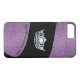 This phone case is shown in the iphone 8/7 case and is shown with a faux glitter in Purple with a Silver crown on stylish design colours of Purple/Black. Sample text of "Miss Westminster 2019" for you to personalise. Customise this phone case with text, change colours or choose a different phone case, and adjust design elements if desired, or purchase as designed.