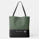 This cute stylish large tote bag is shown in Chive Green and black bottom colour block style with a pageant crown and custom text. Has Accent stripe.