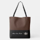 This cute stylish large tote bag is shown in a Burnt Sienna and Black colour block style with a pageant crown and custom text.