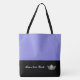 This cute stylish large tote bag is shown in Lavender and Black colour block style with a pageant crown and custom text.