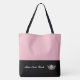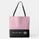 This cute stylish large tote bag is shown in a Pink and Black colour block style with a pageant crown and custom text.