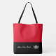 This cute stylish large tote bag is shown in red and black colour block style with a pageant crown and custom text.