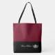 This large sized tote bag is created in Crimson and Black colour block style with a Silver crown and custom text for your personalised pageant/name/title. Text and graphics double-sided.