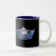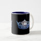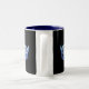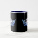 A gleaming Blue crown print poised front and centre on each side of this coffee/cocoa mug. Shown in Black & White mug with a coordinating Navy Blue interior. Customise and Personalise or buy as designed.