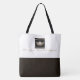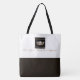 This tote is shown in a crisp White, Black strap, Dark Brown bottom with coordinating accents above and a gorgeous gleaming Golden round crown on top side of front & back along with text for you to customise this tote or buy as is. Remember to customise both sides!