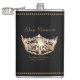 A bit of home comfort anywhere you go to celebrate in style. Bold Gold crown printed on front only, along with text for you to customise with your own. Gold coloured diamond pattern atop and bottom of flask. Silver, Black and Gold colourings. Miss America style crown.