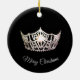 This Christmas ornament is shown in a round shape with a photo print of a gleaming silver crown and text of Merry Christmas.