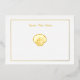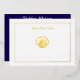 This SAVE THE DATE invitation is truly regal in appearance. Shown with a Miss America style pageant queen's crown printed over a deep rich blue background and in casual breezy script on the reverse. A classic single shell gilded in real gold foil on the front surrounded by a classic border.