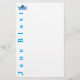 Bold lettering in an enormous size on the left edge of this stationery. Topped off by a Miss America type ornate round crown used by many local pageants in the U.S. & Canada in a bold and crisp Turquoise Blue and text written in a Turquoise Blue to compliment. Customise this item or buy as is if your name is Jane Blast! Customise with selection menu at right.