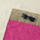 This beach towel is shown in a fun faux Glitter print in Pink. Centre has subtle "faded" look. Ends in Gold faux glitter colour.