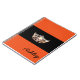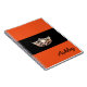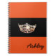 Notebook shown with a photo print of a sharp looking Peach coloured crown on a black background and a custom name. Notebook shown in Orange. Customise this item and change the name to yours or take off the name and buy as is.
