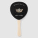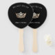 This paddle fan is shown in Black with a print of a gold tone Miss America style crown and sample text for you to customise to your liking. Choose from different shapes, etc.