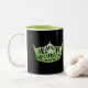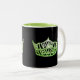 A gleaming Spring Green crown print poised front and centre on each side of this coffee/cocoa mug. Shown in Black & White mug with Spring Green interior. Customise and Personalise or buy as designed.