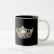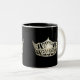 A gleaming Platinum crown print poised front and center on each side of this coffee/cocoa mug. Shown in Black & White mug with Black interior. Customize and Personalize or buy as designed.