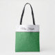 This tote bag is shown with a fun faux Green glitter print. Has a White band at top with your personalised title, name or favourite phrase.